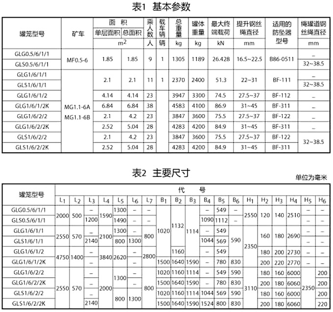 單繩罐籠由楔形連接裝置,抓捕器、罐體、罐內(nèi)阻車器、導(dǎo)向裝置組成,如用于上下人,則必須設(shè)置斷繩保險(xiǎn)器(防墜器),抓捕器根據(jù)制動(dòng)繩布置形式可分為I型(對(duì)稱)抓捕和II型(對(duì)角)抓捕形式。常用單繩罐籠及配套防墜器的具體型號(hào)參數(shù)見附表。
